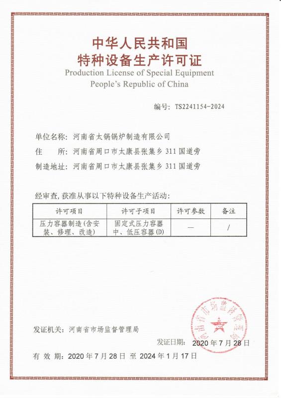 河南省太鍋鍋爐制造有限公司(原河南省太康鍋爐廠始建于1976年)始建于70年代初,經(jīng)40多年的艱辛探索,靠科技興業(yè),走科學(xué)管理之路,現(xiàn)已發(fā)展成為承接制造、安裝、設(shè)計(jì)大、中型供熱系統(tǒng),生產(chǎn):SZS燃油燃?xì)庹羝仩t、燃煤蒸汽鍋爐、燃油鍋爐、燃?xì)忮仩t、電加熱鍋爐、生物質(zhì)鍋爐、茶水鍋爐、有機(jī)熱載體鍋爐、熱風(fēng)鍋爐,蒸壓釜、燃油蒸汽鍋爐、燃?xì)庹羝仩t、燃油熱水鍋爐、燃?xì)鉄崴仩t并承擔(dān)安裝120噸熱水鍋爐、蒸汽鍋爐,生物質(zhì)鍋爐,加工制造一、二類蒸壓釜、壓力容器,化工機(jī)械的省一級**企業(yè)。